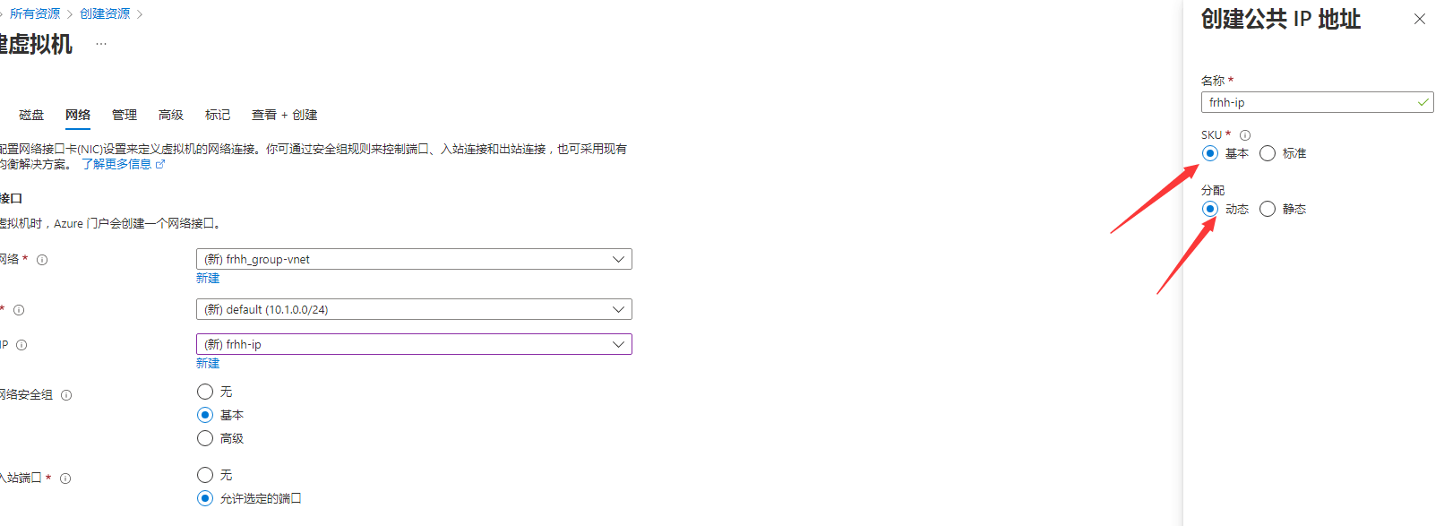 创建新的虚拟机默认静态IP且不可变更为动态IP。因此需要在创建时就配置好动态IP:将基础配置→实例详细里的可用性选项选为无需基础结构冗余,在网络配置→公用IP 新建一个公共IP地址,SKU为基本,分配为动态,确定后创建虚拟机即可。